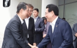전남 전향윤 기자2023. 07.26[뉴스맘]김영록 전라남도지사는 26일 수전해 소재 연구개발 현장 점검차 여수LG화학을 방문한 한덕수 국무총리에게 지역 수소산업 육성을 위한 여수·광양 수소배관망 구축사업의 예비타당성조사 사업 선정 등 현안을 건의했다. 전남도에 따르면 한덕수 총리는 지난 4월 국가 탄소중립 녹색성장 기본계획 발표 이후 탄소중립 이행 정책현장 점검을 위해 이날 여수 LG화학의 전기분해 공장 및 수전해 소재 연구개발 현장을 방문했다. 현장에는 김영록 지사, 강경성 산업통상자원부 2차관, 이정원 국무조정실 국무2차장, 주대영 탄소중립녹색성장위원회 사무차…