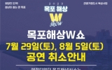 목포 전향윤 기자2023. 07.25[뉴스맘]목포시는 목포해상W쇼 개최 예정이었던 7월 29일 정기공연과 8월 5일 특별공연을 취소한다고 밝혔다. 시는 최근 집중호우로 전국적인 인명 및 재산 피해가 발생하고 재난 복구가 진행 중인 상황에서 피해자와 유가족의 아픔을 함께하고 강풍예보와 전국적인 수해 피해 복구에 행정력을 집중하는 차원에서 취소한 것이라며 양해를 당부했다. 목포해상W쇼는 평화광장 해상무대에서 포퍼먼스 콘서트형 공연, 웅장한 초대형 불꽃쇼를 선보이는 목포 대표 야간관광상품이다. 시 관계자는 하반기에는 8월 26일 밤8시부터 9시까지 정기공연을 시작으…