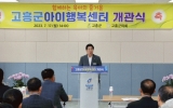 전남 전향윤 기자2023. 07.17[뉴스맘]고흥군은 17일 지상 2층 규모의 고흥군 육아통합거점센터인 아이행복센터 개관식을 갖고 본격적인 운영에 들어갔다. 이날 개관식에는 공영민 군수, 이재학 군의장을 비롯한 기관·사회단체장, 영유아 자녀와 부모 등 군민 100여 명이 참석한 가운데 경과보고, 축사, 케이크 커팅식 및 시설 내부 라운딩 등으로 진행됐다. 공영민 군수는 기념사에서 “고흥군 아이행복센터가 도양읍 영유아 육아지원을 위한 거점 공간으로 자리매김해 나가길 기대한다며, 아이 키우기 좋은 건강한 고흥을 만들기 위해 양육 친화적인 사회환경을 조성하는 데 앞으로…