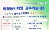 광산구 전향윤 기자2023. 07.05[뉴스맘]동학농민혁명 광주학술대회가 7월 7일 오후 2시에 ‘광주지역 동학농민혁명의 계승과 보존’을 주제로 광주광역시 광산구청 7층 윤상원홀에서 열린다. 학술대회는 전남대 평화통일외교센터와 동학농민혁명 광주유족회·기념사업회가 주최하고, 광주광역시·광주광역시의회·광산구청·광산구의회가 후원한다. 이상식 전남대학교 명예교수가 기조 발표를 한다. 민족문제연구소 박용규 연구위원은 “나주 북동부에서 희생당한 동학농민혁명군-침산·사창 전투, 용진산 전투, 남산촌 전투를 중심으로-”을 제1주제로 발표한다. 전남대학교 정치외교학과 김재기 교수는 …