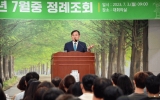 [뉴스맘]담양군은 지난 3일 군청 대회의실에서 공직자 200여 명이 참석한 가운데 7월 증 정례 조회를 개최했다. 이날 조회에서는 ‘2023 New Bamboo Festival’ 유공자 및 군정 발전 유공자 표창, 베스트공무원 및 깨끗한 담양 만들기 우수부서에 대한 시상을 진행했다. 이병노 군수는 이날 민선 8기 1년 분야별 역점 추진사항에 대해 간략히 설명하고, 성과를 이뤄낼 수 있도록 협조해준 공직자와 군민의 성원에 감사를 전했다. 또한 군민 행복을 위한 모든 사업의 성공적인 추진을 위해서는 예산확보가 최우선 과제라는 인…
