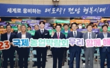 [뉴스맘]전라남도국제농업박람회사무국은 3일 도청 왕인실에서 2023 국제농업박람회 홍보대사로 인기가수 박지현을 위촉하고 17개 유관기관과 관람객 유치·농산물 마케팅 협약을 하는 등 성공 개최 본격 담금질에 들어갔다. 이날 행사에는 김영록 전남도지사, 전남도교육청, 농협중앙회전남본부, 한국농어촌공사, 전남식품수출협회, 중앙단위 농업인학습단체 및 청과회사 대표이사 등 300여 명이 참석했다. 이들은 인류를 위한 씨앗 심기 시연과 업무협약으로 박람회 성공개최를 기원했다. 국제농업박람회 홍보대사로 위촉된 목포 출신 트로트 가수 박지현은…