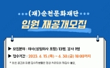 순천 전향윤 기자2023. 06.19[뉴스맘]재단법인 순천문화재단은 순천시 문화예술진흥과 발전을 이끌어갈 제3기 임원을 이달 30일까지 재공개 모집한다고 밝혔다. 이는 최초 공개모집에서 응모자 수가 결원예정 직위수의 2배수에 미달할 경우 재공고를 실시토록 하는 지방출자?출연기관 인사조직지침에 따른 것이다. 선발절차 또한 임원추천위원회에서 ▲1차 서류심사 고득점자순으로 임원후보자를 확정?추천하고 ▲상임이사는 최종 임명된 이사(13명) 중 희망자에 한해 2차 면접심사를 거쳐 추천하는 것으로 변경됐다. 접수방법은 최초 공고와 동일하게 방문, 전자우편, 등기우편으로 접…