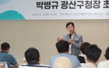 광주 전향윤 기자2023. 06.13[뉴스맘]박병규 광산구청장이 13일 지역경제활력센터에서 광산구 노인의료복지시설 연합회를 대상으로 민선8기 주요 구정 비전을 공유하고 소통하는 시간을 가졌다. 이날 광산구 지역 장기요양기관 운영자 등 60여 명이 참석한 가운데, 박병규 청장은 △두터운 복지서비스로 시민을 이롭게 하는 상생 복지공동체 구현 △광산형 복지혁신으로 모두가 상생하는 통합돌봄 체계 구축 △어르신 맞춤형 복지서비스 제공으로 품격 있고 행복한 노후생활 보장 등 복지 분야 대표 공약과 구정 방향을 소개하고 다양한 생각과 의견을 나눴다. 박병규 청장은 “돌봄 종사…