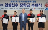 전남 전향윤 기자2023. 06.13[뉴스맘]전갑수 체육회장은 6월 13일 광주광역시체육회관 2층 중회의실에서 ‘제52회 전국소년체육대회 입상선수 장학금 수여식’을 열어 입상선수 110명에 대하여 20,900,000원의 장학금을 수여했다. 이날 행사는 근대5종 이정하 부회장, 에어로빅힙합 송경아 부회장과 바둑 한병성, 농구 배준태, 역도 이애라, 펜싱 김용국 전무이사를 비롯한 입상선수 110명 중 17개 종목의 대표선수 각 1명씩과 지도자 등 50여명이 함께했다. 소년체전 입상자 장학금 수여는 어려운 여건 속에도 학교생활과 운동선수로서 두 가지 목표에 최선을 …