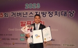 정치 전향윤 기자2023. 05.24[뉴스맘]전라남도의회 기획행정위원회 박원종 의원(더불어민주당, 영광1)이 24일 국회도서관 강당에서 개최된 2023년 거버넌스지방정치대상 시상식에서 분권자치 강화 분야 우수상을 수상했다. 거버넌스지방정치대상은 거버넌스센터가 주최하고 거버넌스지방정치대상공모대회 조직위원회가 주관하며 공모 분야로는 주민생활편익 확대, 행정효율성 제고, 공동체역량 증대, 지역활력 증진, 지역문화가치 창달, 분권자치 강화, 미래 개척, 정치문화 혁신까지 총 8개 분야를 심사하여 선정.시상한다. 박원종 의원은 제12대 전라남도의회 기획행정위원회 …