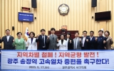 정치 전향윤 기자2023. 05.17[뉴스맘]광주광역시 서구의회 의원들이 지역차별 철폐와 지역균형발전을 위한 고속열차 증편을 요구하고 나섰다. 서구의원 일동은 17일 열린 제311회 임시회 폐회 직후 본회의장에 모여 ‘광주 송정역 고속열차 증편 촉구 건의안’을 발표했다. 건의안을 대표 발의한 임성화 의원은 호남선 KTX가 이용객의 지속적인 증가를 반영하지 못하고 있다고 지적했다. 또한, 고속철도 이용 불편의 방치는 지역차별을 묵인하는 것이며 지역소멸, 일자리 감소 등을 야기하는 지역발전의 저해 요소라고 주장했다. 임 의원은 “코레일과 국토부는 차량 부족, 선로 …