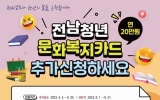 강진 전향윤 기자2023. 05.08[뉴스맘]전남 강진군이 관내 청년들을 대상으로 ‘전남청년 문화복지카드’ 지원사업 대상자를 추가 모집한다고 8일 밝혔다. ‘강진군 전남청년 문화복지카드 지원사업’은 청년의 문화생활 향유 및 자기개발 기회를 제공하기 위해 전남도와 함께 관내 청년들에게 연 20만 원의 문화 복지비용을 지원하는 사업이다. 지원 대상은 2021년 4월 3일 이전부터 강진군 내에 주소를 두고 계속 거주하고 있는 19~28세(1995년~2004년생) 청년이다. 지난 2월에 지원사업을 신청하지 못했거나 거주 기준 부적합으로 제외됐던 청년들도 거주 조건 등 …