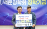 광양 전향윤 기자2025. 09.15[뉴스맘]재단법인 백운장학회는 지난 10일 시청 만남실에서 장학금 기탁식을 가졌다. 이날 행사에는 정인화 광양시장(장학회 이사장)과 정용관 감사 등이 참석했다. 정용관 감사는 2021년 (재)백운장학회 감사로 선임됐다. 그는 지난 2002년 1백만 원, 2010년 1천만 원을 후원한 데 이어 올해도 학생들이 경제적 어려움 없이 학업에 매진할 수 있도록 5백만 원을 기탁했다. 이로써 누적 기탁액은 총 1천6백만 원에 달한다. 아울러 그는 장학사업뿐 아니라 지역사회 곳곳에서도 꾸준히 나눔을 실천해 왔다. 지난 20여 년간…