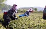 순천 전향윤 기자2023. 04.17[뉴스맘]절기 곡우를 사흘 앞둔 17일 보성군 회천면 백록다원에서 농민들이 찻잎을 따고 있다. 한편, 보성군은 ‘천년의 보성 차, 세계를 품다!’라는 주제로 4월 29일부터 9일간 보성세계차엑스포를 개최한다.