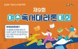 여수 전향윤 기자2023. 03.31[뉴스맘]여수시가 책 읽는 문화조성을 위해 4월 1일부터 9월 30일까지 6개월간 ‘제9회 여수독서마라톤대회’를 개최한다. ‘독서마라톤대회’는 책 1쪽을 마라톤 1m로 환산해 코스를 완주하는 책 읽기 경주다. 대회는 종목별로 ▲개인 4개 코스(3km, 5km, 7km, 10km) ▲단체 2개 코스(하프, 풀)로 구성된다. 단체의 경우 하프코스(21.098km)는 2~7인까지, 풀코스(42.195km)는 2~14인까지 신청 가능하다. 신청은 4월 1일부터 9월 15일까지 여수독서마라톤대회 홈페이지에서 할 수 있으며, 참가 신청 …