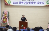 장흥 전향윤 기자2023. 03.15[뉴스맘]전남 함평군이 지역 농업을 이끌 농업인재 양성을 위해 ‘제15기 농업대학 입학식’을 개최했다. 15일 군에 따르면 지난 13일 농업기술센터 플라워푸드 교육관에서 입학생 94명이 참석한 가운데 제15기 농업대학 입학식이 진행됐다. 올해 농업대학은 그린농업반, 한우반 등 2개 전문 과정을 개설해 오는 12월까지 약 20회에 걸쳐 이론 및 현장 교육이 실시된다. 특히 이날 입학식에는 최고령 입학생 이계남(78세) 씨와 최연소 입학생 이기남(28세) 씨가 함께 입학해 눈길을 끌었다. 이상익 농업대학장은 “과정별 전문교…