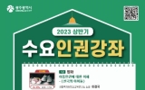 광주 전향윤 기자2023. 03.14[뉴스맘]광주광역시는 공직자와 시민의 인권감수성 향상을 위해 ‘수요인권강좌’를 운영한다. 올해 수요인권강좌는 29일 첫 강좌를 시작으로 6월까지 5차례에 걸쳐 열린다. 특히 지난 2년간 코로나19 상황에 따라 비대면 온라인으로 진행하던 교육방식을 대면으로 전환하고 인권영화 상영, 북 토크 등 교육 방식을 다양화한다. 또 저명한 인권 강사의 강의를 누구나 들을 수 있도록 유튜브 방송도 병행 운영한다. 강좌는 최근 인권 동향을 고려한 시의성 있는 주제를 선정해 진행한다. 29일에는 영화 ‘천국의 아이들’ 상영에 이어 이경국 사회…
