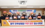 전남 전향윤 기자2023. 03.14[뉴스맘]무안군 이장협의회는 지난 13일 군청 회의실에서 광주 전투비행장 무안 이전 반대 결의대회를 했다. 이 자리에서 노재남 이장협의회장은 “지난 9일에 강기정 시장이 군 공항을 무안국제공항과 통합하고 그곳에 한국공항공사를 유치해야 한다는 발언은 공인으로서 타 자치단체 권한을 침해하는 무례하고 무책임한 발언이다”며 “무안군을 전투비행장 이전지로 정해놓고 함평군민과 영광군민 등을 이용해 우리 군민들을 자극하기 위한 도구로 전남도민을 이용하고 농락한 강기정 시장은 즉시 사과해야 한다”고 성토했다. 앞으로 이장협의회는 광주 전투비행…