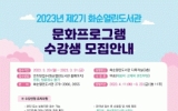 담양 전향윤 기자2023. 03.13[뉴스맘]화순군은 화순열린도서관에서 제2기 문화프로그램 수강생을 모집한다고 밝혔다. 제2기 문화프로그램은 4월 11일부터 6월 23일까지 총 11주에 걸쳐 진행되며, 유아부터 초등학생 1~2학년 그리고 그 외 일반인을 대상으로 진행된다. 유아 대상, ‘오감톡톡 베이비오감놀이’, ‘Let’s go 영어동화나라로’, ‘하하호호 책놀이터’, 초등학교 1~2학년 대상, ‘케이넥스로 배우는 과학실험’, 일반인 대상, ‘마음을 위로하는 책’ 프로그램 등 5개 강좌에 총 74명을 모집한다. 수강 희망자는 3월 20일부터 3월 31일까지 화…