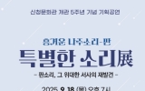 순천 전향윤 기자2025. 09.04[뉴스맘]전라남도 나주시가 나주신청문화관 개관 5주년을 맞아 특별 무대를 진행한다. 4일 나주시에 따르면 오는 18일 오후 7시 기획공연 ‘흥겨운 나주소리-판 특별한 소리展’을 열어 소리의 기원과 전승의 의미를 되새기는 특별 공연을 개최한다. 이번 공연은 판소리의 본향 나주에서 지역 예인들의 넋을 기리고 위로하는 ‘나주신청 선생안제’를 재현하며 판소리의 시작부터 일제강점기를 거쳐 현재에 이르기까지의 변화상을 무대에 담는다. 출연진으로는 국가무형유산 판소리 예능 보유자 윤진철, 판소리고법 전승 교육사 정회천, 승무 전승 교육사 …
