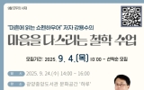 광양 전향윤 기자2025. 09.04[뉴스맘]광양중앙도서관은 9월 24일 오후 2시 문화공간 ‘하루’에서 '모두의 서재' 세 번째 강연을 개최한다. 이번 강연에는 철학자이자 작가인 강용수가 초청돼 ‘마음을 다스리는 철학 수업’을 주제로 시민들과 만난다. '모두의 서재'는 각계 전문가들이 연구와 경험을 바탕으로 세상을 바라보는 폭넓은 시각을 시민들과 공유하는, 광양중앙도서관의 대표 인문학 프로그램이다. 일상의 고민과 질문에 깊이 있는 통찰을 나누는 장으로 자리매김해 왔으며, 지난 6월 열린 두 번째 강연에서는 남인숙 작가가 ‘어른의 자존감’을 주제로 강연해 큰…