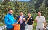 순천 전향윤 기자2025. 09.04[뉴스맘]순천시 황전면에 위치한 사과 재배 농가에서 조생종 품종인 `홍로’ 수확이 한창이다. ‘홍로’ 사과는 농촌진흥청이 개발한 추석용 품종으로, 매년 8월 말부터 9월 초 사이에 수확된다. 붉고 탐스러운 껍질과 뛰어난 광택이 특징이며, 평균 13~14브릭스에 달하는 높은 당도로 소비자 입맛을 사로잡고 있다. 특히 올해는 여름철 기상 여건이 안정적으로 이어지면서 전반적으로 당도와 품질이 뛰어나, 명절 선물용 수요가 더욱 늘어날 것으로 기대된다. 순천시의 사과는 고지대인 승주읍과 황전면 일대 약 4ha 면적에서 20여 농…