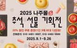 순천 전향윤 기자2025. 09.03[뉴스맘]전라남도 나주시가 지역 농특산물 온라인 쇼핑몰 ‘나주몰’을 통해 추석을 맞아 전 품목 20% 할인 특판전을 열고 전국 소비자에게 믿을 수 있는 나주 농특산물을 합리적인 가격에 제공한다. 나주시는 오는 9월 26일까지 ‘2025 나주몰 추석 명절 특판전’을 열고 나주배, 배즙, 쌀, 홍어, 한우 등 대표 농특산물을 포함한 전 품목을 20% 할인한다고 3일 밝혔다. 행사 기간 중 1인당 최대 12만 원(할인쿠폰 3매)까지 혜택받을 수 있다. 특히 ‘천년이음 나주배’는 추석 명절 선물용으로 손꼽히고 있다. 품위, 당도, …