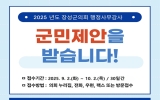 교육 전향윤 기자2025. 08.29[뉴스맘]장성군의회는 오는 9월 2일부터 10월 2일까지 30일간 ‘2025년도 행정사무감사 군민제안 창구’를 운영한다고 밝혔다. 제안 대상은 ▲군 주요 시책과 사업의 개선·건의사항 ▲위법·부당한 행정 사례 등이다. 단, 개인 사생활 침해, 단순 숙원사업, 재판·수사 중인 사건, 명예훼손 우려가 있는 사항, 익명 제안 등은 제외된다. 이번에 접수된 내용은 장성군의회 행정사무감사 대상에 반영하거나 참고자료로 활용될 예정이며, 군민제안은 방문접수 또는 전화, 팩스 및 우편이나 장성군의회 누리집을 통해 가능하다. 심민섭 의장은“…