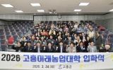 고흥 전향윤 기자2026. 03.25[뉴스맘]고흥군은 지난 24일 농업기술센터 대교육장에서 2026학년도 고흥미래농업대학 입학식을 개최하고, 지역 농업의 미래를 이끌 전문농업경영인 양성을 위한 본격적인 교육과정 운영에 들어갔다. 입학식은 국민의례, 신입생 대표 선서, 인사말, 기념 촬영, 오리엔테이션 순으로 진행됐다. 올해 고흥미래농업대학은 고흥군 전략작물 중심의 전문교육 강화 기조에 따라 ‘복숭아반’과 ‘양념채소반’으로 운영된다. 교육은 3월부터 10월까지 진행되며, 작물 재배 기술을 비롯해 병해충 관리, 토양관리, 농업경영, 마케팅, 디지털 문해력, 농기계…