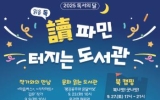 곡성 전향윤 기자2025. 08.27[뉴스맘]곡성군이 독서의 달을 맞아 오는 9월 2일부터 30일까지 ‘讀(독)파민 터지는 도서관’이라는 슬로건 아래 다양한 독서문화 행사를 운영한다. 이번 행사는 책 읽기를 통해 군민에게 긍정적인 에너지를 전하고, 도서관의 문화적 가치를 확산하기 위해 마련됐다. 주요 프로그램으로는 △그림책 '마음버스', '사자마트'의 김유 작가와의 만남 △어린이를 위한 연극 '평강 공주와 온달 바보' 공연 △가족 참여형 북캠핑 ‘북나잇! 굿나잇!’ 체험 △철새를 주제로 한 ‘길 위의 인문학’ 강연과 탐방 등이 준비돼 있다. 부대행사로…