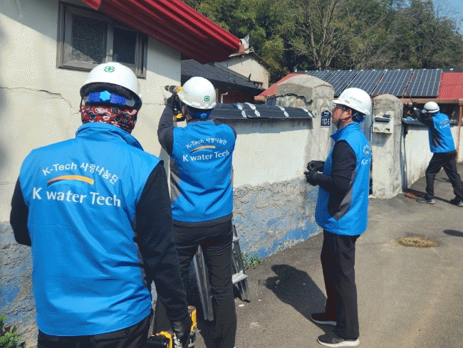 이날 봉사활동에는 기업봉사단인 케이워터기술㈜ 영·섬유역본부(본부장 박성영)직원 7명이 참여하여, 어두운 골목길에 태양광 가로등 40여 개를 설치했다.