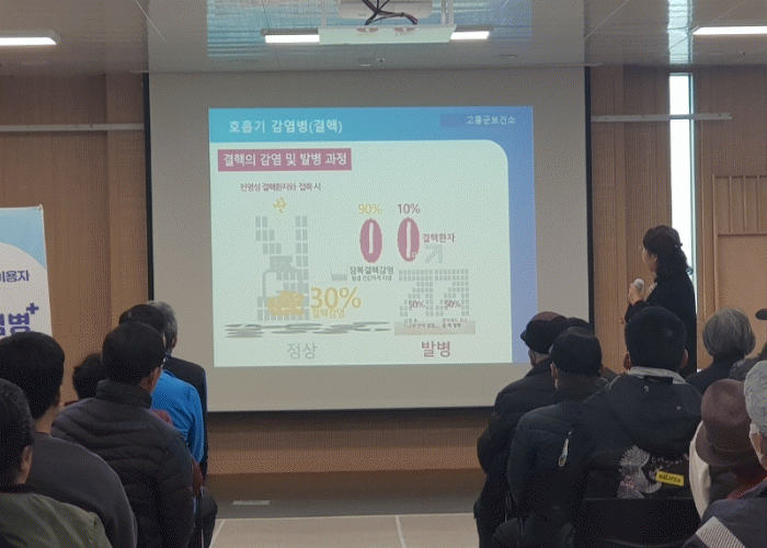 이 밖에도, 제14회 ‘결핵 예방의 날’을 맞아 지난 18일부터 24일까지 고흥읍 전통시장, 고흥군 노인복지관, 고흥군 장애인 복지관, 풍양면 마을회관과 경로당 등을 방문해 결핵에 대한 경각심을 일깨우고, 결핵 조기 검진과 건강관리에 도움이 되는 다양한 정보를 제공하는 데 심혈을 기울이고 있다.