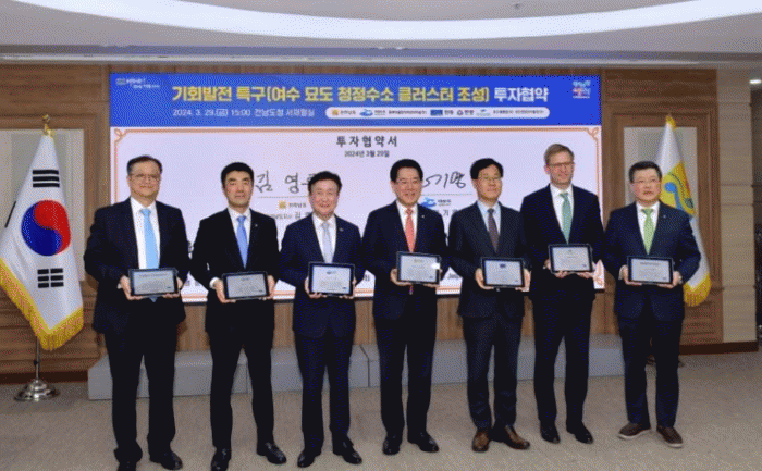 이날 전라남도청 서재필실에서 열린 투자협약에는 여수시와 전라남도, 동북아엘엔지허브터미널㈜, 묘도열병합발전㈜, 묘도연료전지발전㈜, 린데코리아㈜·㈜한양, 에코로그·㈜한양이 참여했다.