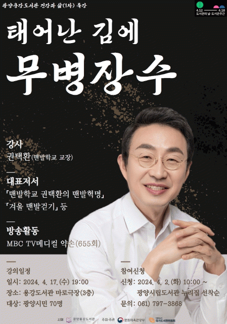 수강을 원하는 시민은 오는 2일 오전 10시부터 광양시립도서관 누리집을 통하거나 용강도서관에 전화로 신청할 수 있다. 기타 궁금한 사항은 광양시립도서관 누리집을 방문하거나 광양용강도서관에 전화로 문의하면 된다.