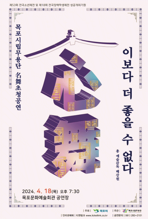 마무리 공연은 목포시립무용단이 전통기반 창작춤 '삼학학춤'(배강원 예술감독 안무)으로 준비된다.