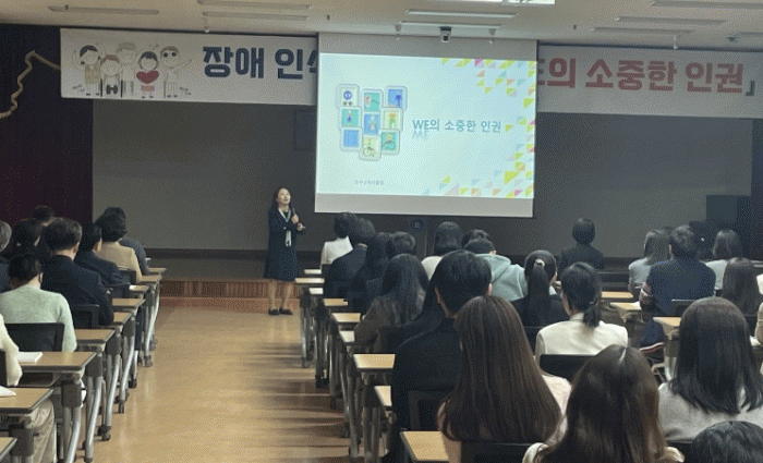 2일 동부교육지원청에 따르면 이번 교육은 직원들의 장애에 대한 올바른 이해와 긍정적 인식을 제고하고자 마련됐다. 한국장애인개발원 위촉 장애인식 개선 교육 전문 강사를 초빙해 ‘WE의 소중한 인권’이라는 주제로 진행됐다. 교육은 ▲장애를 바라보는 관점과 인식, ▲장애의 정의와 유형, ▲장애 감수성 등의 내용으로 구성됐다.