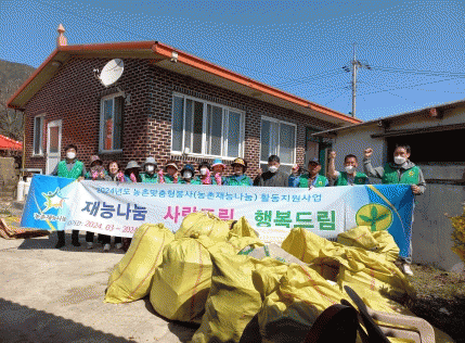 관산읍 새마을회는 각 마을의 어려운 이웃을 위하여 소규모 집수리지원, 집안대청소, 밑반찬 나눔 등의 봉사활동을 진행하고 있다.