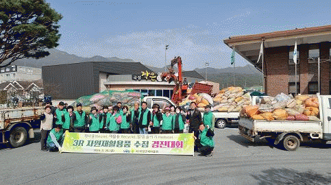 3.29일 곡성군민회관에서 새마을회 재활용수집창고와 각 마을에서 연중 모아 두었던 생활 주변에 방치되거나 버려지는 헌옷, 커텐, 가방, 신발 등을 재활용 및 재생하여 건강한 공동체 만들기 및 지구온난화 예방의 탄소 줄이기 범군민 참여분위기를 조성하여 20톤의 자원을 수거하였다.