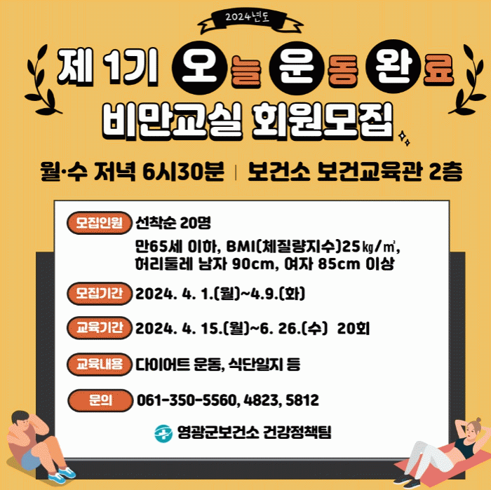 참여 대상은 만 65세 이하 체질량지수(BMI) 25㎏/㎡, 복부비만(허리둘레 남자 90cm, 여자 85cm 이상)인 영광군 군민 대상이다.