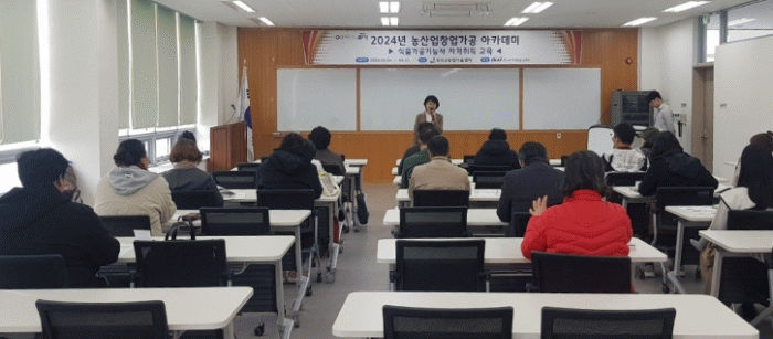 이번 교육은 작년에 이어 식품가공기능사 자격증반을 개설해 지역 내 농산물 가공과 유통에 관심이 있는 농업인과 예비가공창업자 22명을 대상으로 필기교육 10회를 실시했고 4월초 필기시험이 끝나면 실기교육을 3회 가질 예정이다.