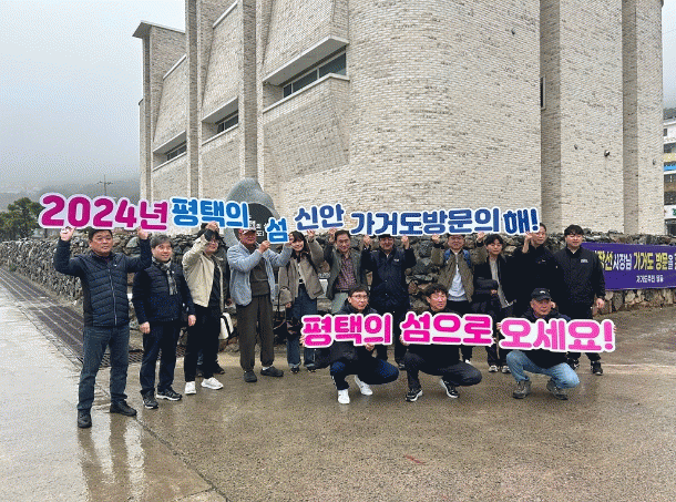 | | 지난 3월 27일, 정장선 평택시장과 공무원들이 가거도를 방문하여 ‘2024년 평택의 섬 가거도 방문의 해’ 선포 기념 촬영을 하고 있다. |