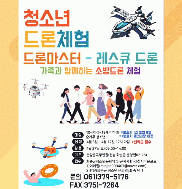 이번 체험활동은 소방 드론 및 촬영 드론, 비행 시뮬레이터(모의실험 장치) 등을 활용한 다양한 체험활동을 통해 청소년의 로봇산업 기술에 대한 이해를 높이고, 미래 사회에 필요한 기술적 소양을 갖출 수 있도록 지원하며 또한 청소년과 보호자가 함께 참여하는 가족 친화 프로그램이다.
