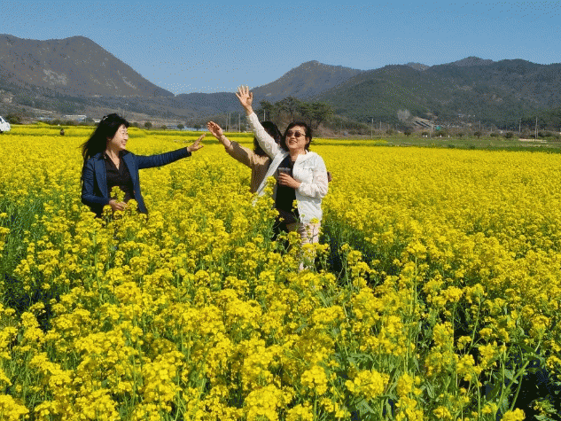 일반적인 유채가 최근 개화 시작 시기인데 반해, 대구면의 유채는 완전히 만개해 진노란색 물결의 볼거리를 연출하고 있어 방문객이 감탄을 자아내고 있다.