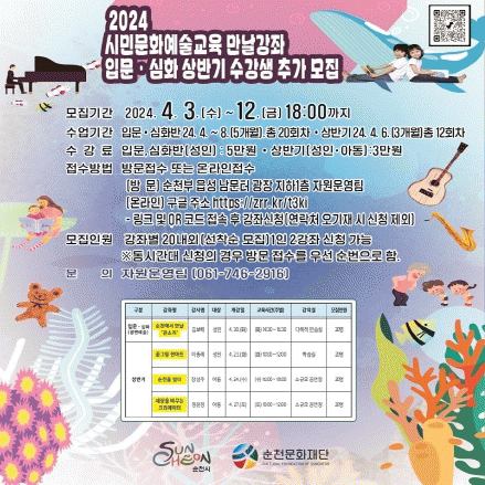 신청은 방문 및 온라인으로 가능하며, 자세한 내용은 순천문화재단 누리집에서 확인할 수 있다.