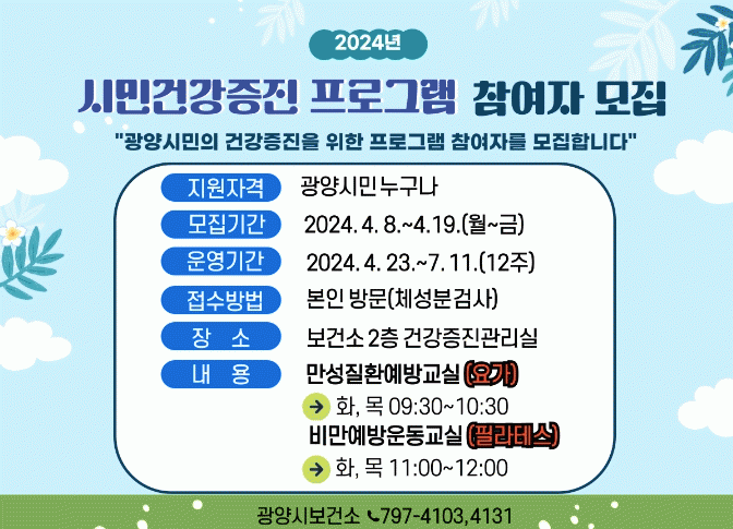 기타 자세한 사항은 광양시보건소 건강증진실로 문의하면 된다.