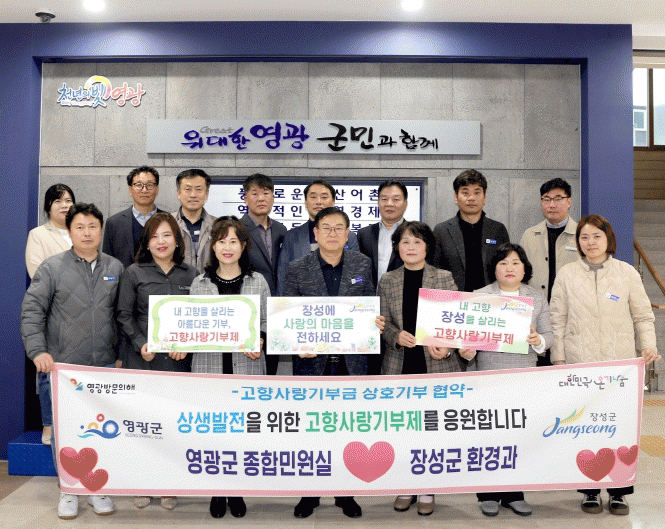영광군(종합민원실)-장성군(환경과)-고창군(종합민원실) 3개 기관 직원 56명이 기부제에 동참하여 각 10만원 씩 고향사랑e음 시스템을 통해 기부하고 답례품으로 영광굴비와 모시송편 등 다양한 농·수·축산물의 혜택을 누렸다.
