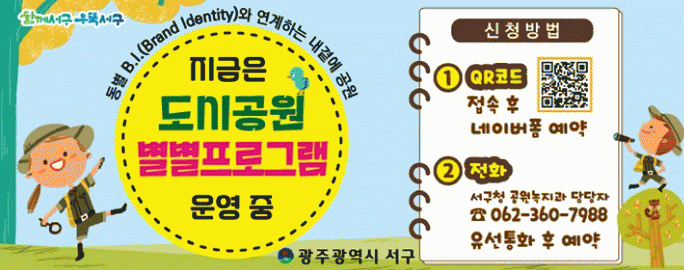 신청은 공원을 이용하는 어린이, 청소년 누구나 가능하며 QR코드 접속 후 네이버폼 신청 또는 서구청 공원녹지과로 전화 예약하면 된다.