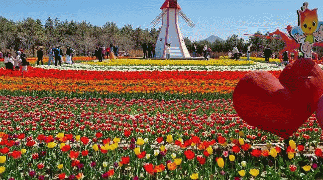 올해 튤립 축제는 ‘누려라!!! 느껴라!!! 즐겨라!!! 형형색색 튤립으로...’라는 슬로건으로 사랑의 고백이라는 아펠도른 외 30여 종 백만 송의 튤립과 홍사자 동백이라 불리는 카네이션 동백 1,000그루도 꽃을 피워 형형색색의 찐한 원색 꽃의 아름다움을 만끽할 수 있다.