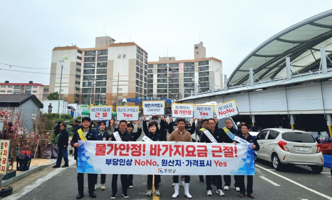 군은 4일 물가안정을 위해 공직자, 무안전통시장상인회와 물가모니터요원 등 30여 명이 무안전통시장에서 바가지요금 근절 및 부당상거래 행위 합동점검과 캠페인을 진행했다.