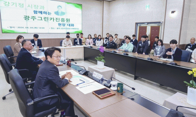 광주광역시와 (재)광주그린카진흥원은 4일 진흥원 국제회의실에서 ‘공공기관 현장대화’를 진행했다. 이날 대화에는 강기정 시장을 비롯해 김덕모 광주그린카진흥원장과 직원들이 자리를 함께했다.