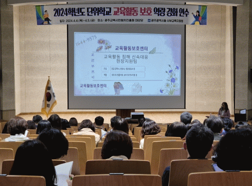 광주동부교육지원청 정성숙 교육장은 ”정당한 교육활동이 보호돼야 교사가 교육적 신념과 자긍심을 가지고 학생을 지도할 수 있다“며 ”교원과 학생 학부모가 상호 존중하며 교육활동을 보호하는 학교 문화가 정착될 수 있도록 현장과 소통하며 변화되는 제도가 안착할 수 있도록 지원하겠다“고 말했다.