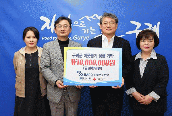 한편, 이번 기탁식은 지난 2022년 구례군과 바로저축은행의 1사1촌 상생 협약에 따른 것이다.