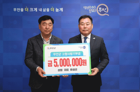 이날 군수실에서 열린 기탁식에 참석한 류성선 대표는 “올해로 시행 2년 차를 맞이한 무안군 고향사랑기부제의 성공적 제도 안착을 적극 응원한다”며 “제도의 활성화에 작게나마 힘을 보탤 수 있어 기쁘게 생각한다”고 말했다.