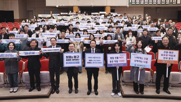 특히 지난해 2월 신규 임용 공직자 20명을 대상으로 한 청렴 서약식을 갖고, 의미를 보태기 위해 국민권익위원회 청렴 필독서로 선정된 ‘거짓말하는 착한 사람들(저자 댄 애리얼리)’과 ‘젠가(저자 정진영)’ 등 2권의 책과 함께 희망 메시지도 전했다. 또한 청년 공직자 대표모임 ‘새빛들’을 구성해 소소하지만 신규 공직자들과 공감대를 형성하는 동구만의 특별한 청렴 소통 방식을 이끌어내고 있다.